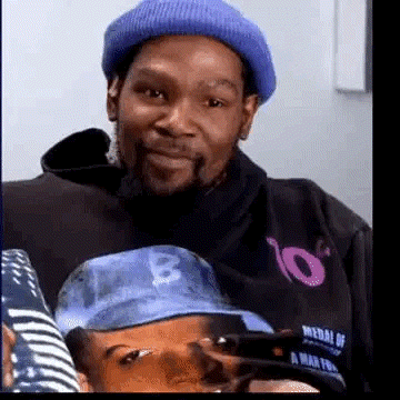 杜兰特看着满脑门汗的哈登,悻悻地说